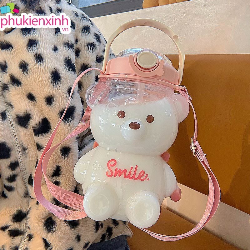 Bình nước gấu có quai đeo LN05 1000ml – Dung tích lớn, dễ thương, tiện mang theo