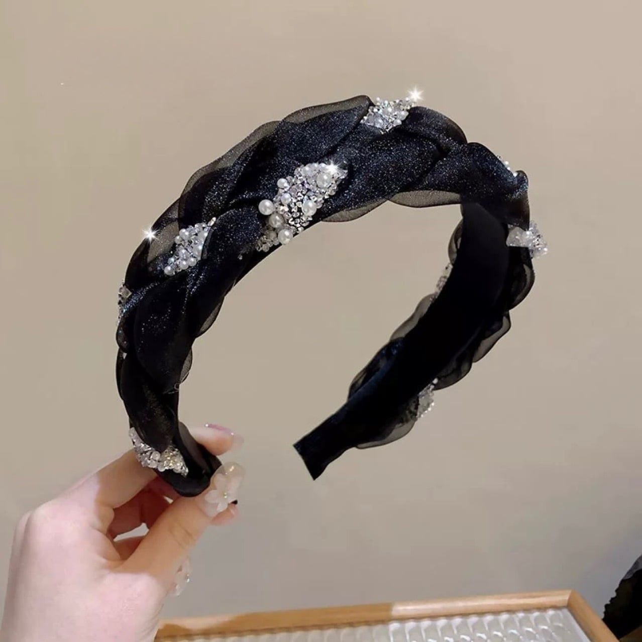 Băng đô BDD018 gây ấn tượng với thiết kế tết bản lớn kết hợp đính đá ánh kim lấp lánh, mang lại vẻ đẹp sang chảnh – nổi bật – cực kỳ cuốn hút ✨