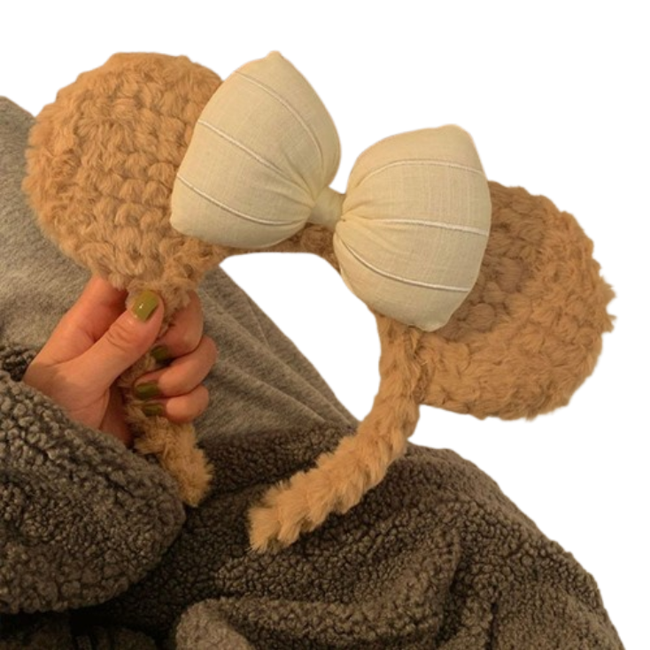 Cô nàng yêu vibe dễ thương thì phải "rinh" em này về ngay nhaaa! 😍 Băng đô BDD031 handmade len móc tai chuột nâu xù mềm mịn, nơ trắng to bự xinh xắn, đeo lên là auto thành "chuột con công chúa" luôn á!