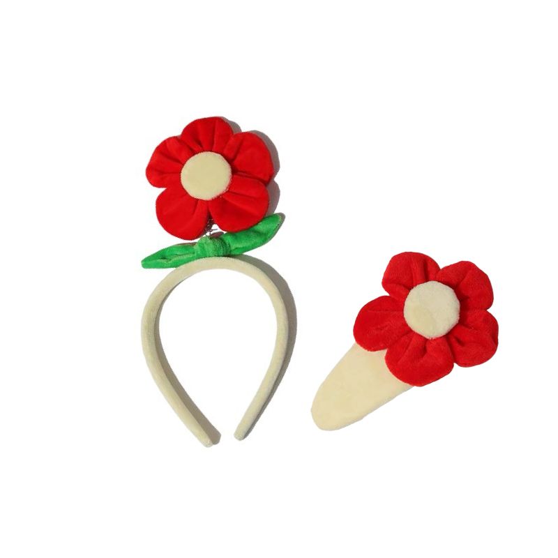 Bộ kẹp tóc và băng đô hoa đỏ BD21