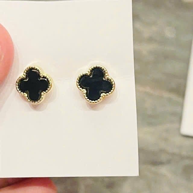Bông tai TB0402 là mẫu bông tai hình cỏ 4 lá viền vàng tinh tế, biểu tượng của may mắn – thanh lịch – nữ tính. Thiết kế nhỏ gọn, màu đen nổi bật kết hợp viền vàng sang trọng, phù hợp đeo hằng ngày hoặc đi làm, đi chơi.