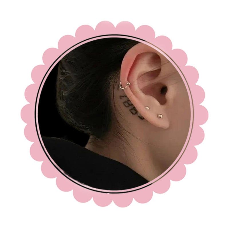 Mix 2–3 khoen nhỏ dọc vành tai → nhìn rất Hàn và cá tính