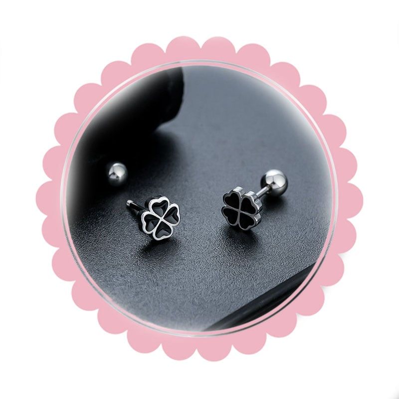 Bông tai TB0423 đinh titan cỏ 4 lá – Nhỏ xinh may mắn, tinh tế mỗi ngày