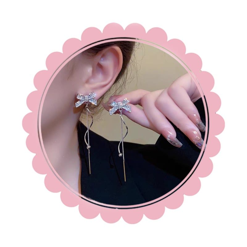 Bông Tai Nơ Dáng Dài TB366 – Thanh Lịch, Lung Linh, Tôn Gương Mặt