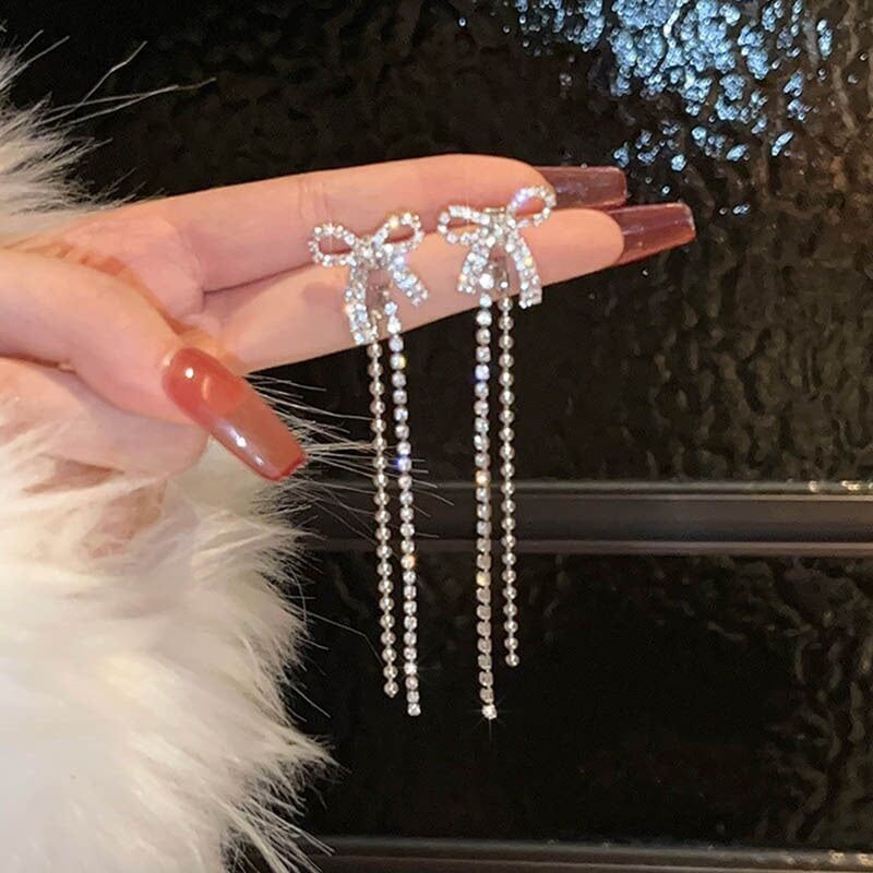 Bông tai TB0449 – Nơ đính đá dáng dài sang trọng, nữ tính ✨