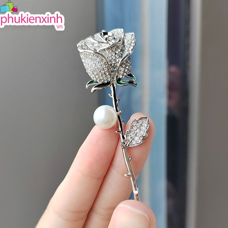 Cài áo AC036 sở hữu thiết kế hoa hồng 3D siêu tinh xảo, phần cánh hoa được đính đá lấp lánh, kết hợp cùng ngọc trai tròn bóng ở phần thân – tạo nên một tổng thể quý phái – sang trọng – nổi bật ngay từ ánh nhìn đầu tiên.