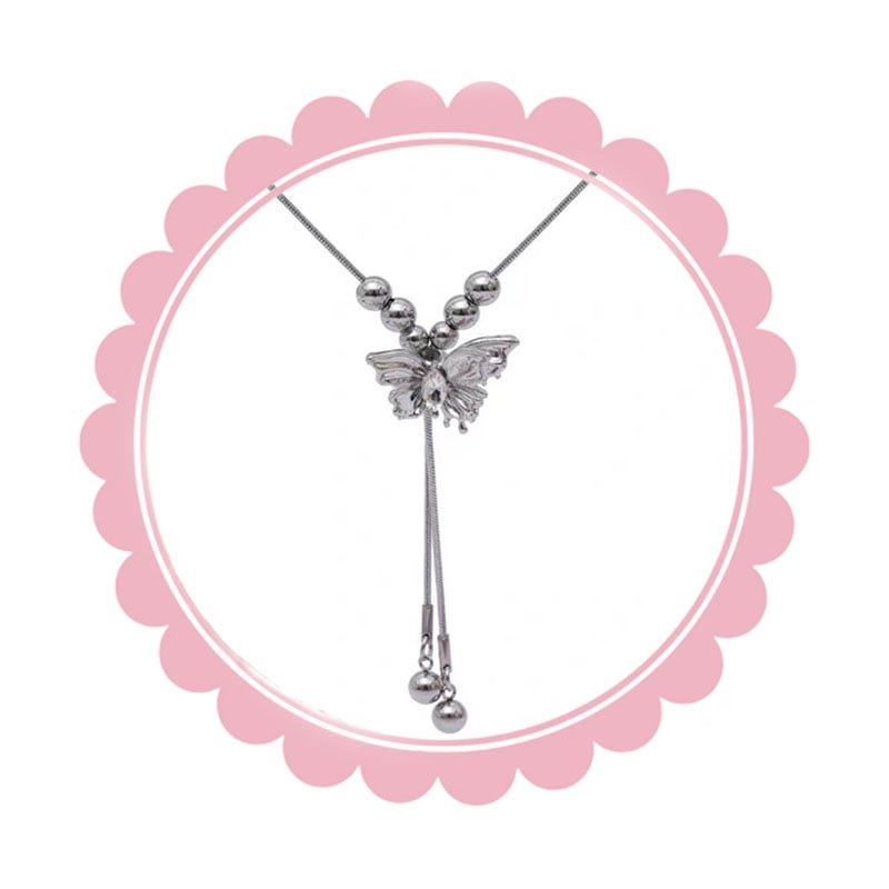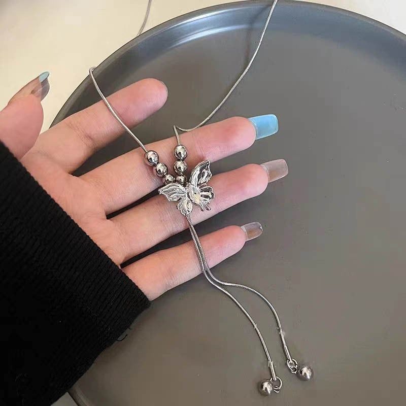 Dây chuyền bướm xinh với thiết kế mặt bướm đính charm rủ dáng Y nhẹ nhàng, đeo lên cổ nhìn vừa nữ tính vừa sang chảnh 🦋✨. Kiểu dáng thanh mảnh giúp tôn phần cổ và xương quai xanh cực đẹp, hợp vibe tiểu thư Hàn Quốc – nhẹ nhàng mà vẫn nổi bật.