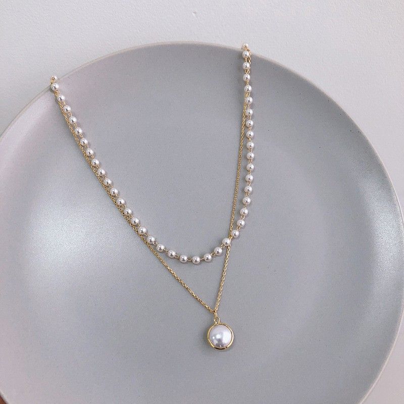 Dây chuyền Mạ mang phong cách nhẹ nhàng – tinh tế – tiểu thư, nổi bật với chuỗi hạt ngọc trai nhỏ kết hợp mặt giọt ngọc xinh xắn 💎