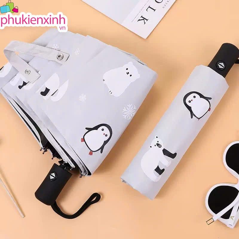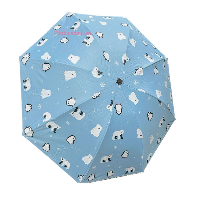 Dù họa tiết dễ thương NGH01 với thiết kế xinh xắn, tông xanh pastel cùng các hình in ngộ nghĩnh như gấu và chim cánh cụt, mang đến cảm giác tươi trẻ và nổi bật khi sử dụng. Với đường kính lớn 109cm, chiếc dù này giúp che mưa, chắn nắng hiệu quả cho cả 1–2 người, phù hợp đi học, đi làm hoặc dạo phố.