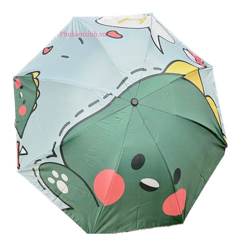 Bề mặt dù được làm từ vải polyester chống thấm nước cao cấp, nhanh khô, dễ vệ sinh. Phần khung làm từ hợp kim nhẹ, dẻo dai và chống gỉ, giúp dù bền bỉ theo thời gian. Họa tiết đáng yêu như khủng long, thỏ, mèo... mang lại cảm giác vui tươi, phù hợp cho học sinh, sinh viên hoặc người đi làm yêu phong cách trẻ trung.