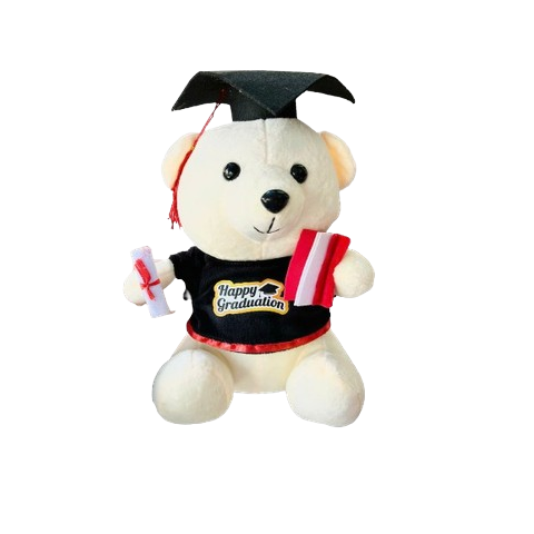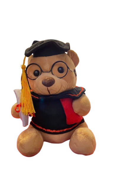 Thiết kế: Gấu bông mặc áo choàng & mũ cử nhân 🎓, tay cầm bằng khen nhỏ xinh – biểu tượng của niềm tự hào và thành công.