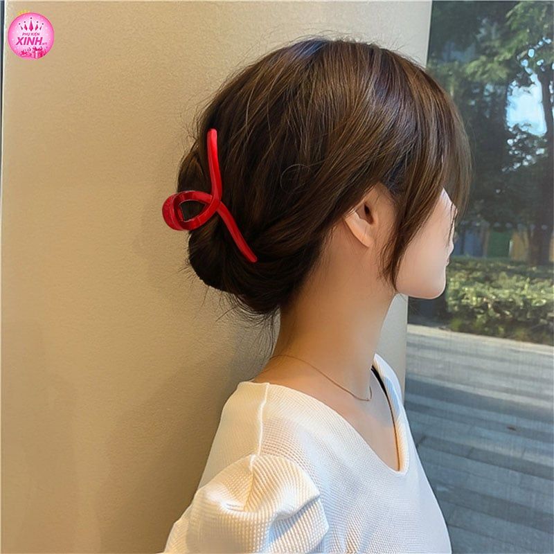 Kẹp Tóc Nhựa KTT0012 – Màu Đỏ Đô Sang Trọng, Cố Định Chắc, Dễ Phối