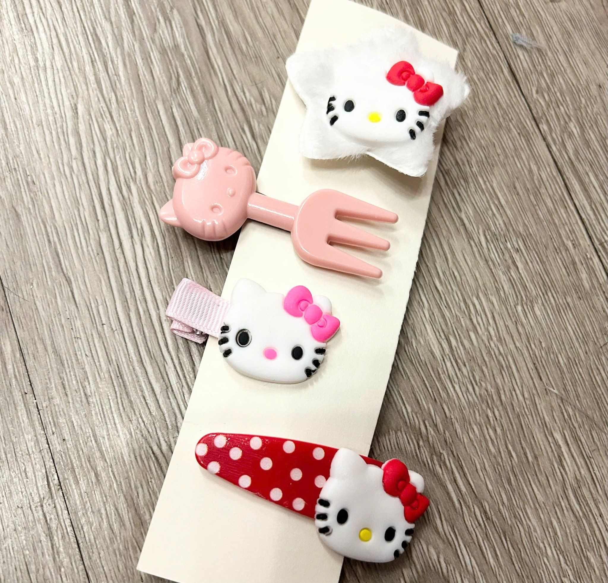 Set gồm 4 mẫu kẹp tóc Kitty đa dạng: kẹp phồng, kẹp mái, kẹp bấm, kẹp gài