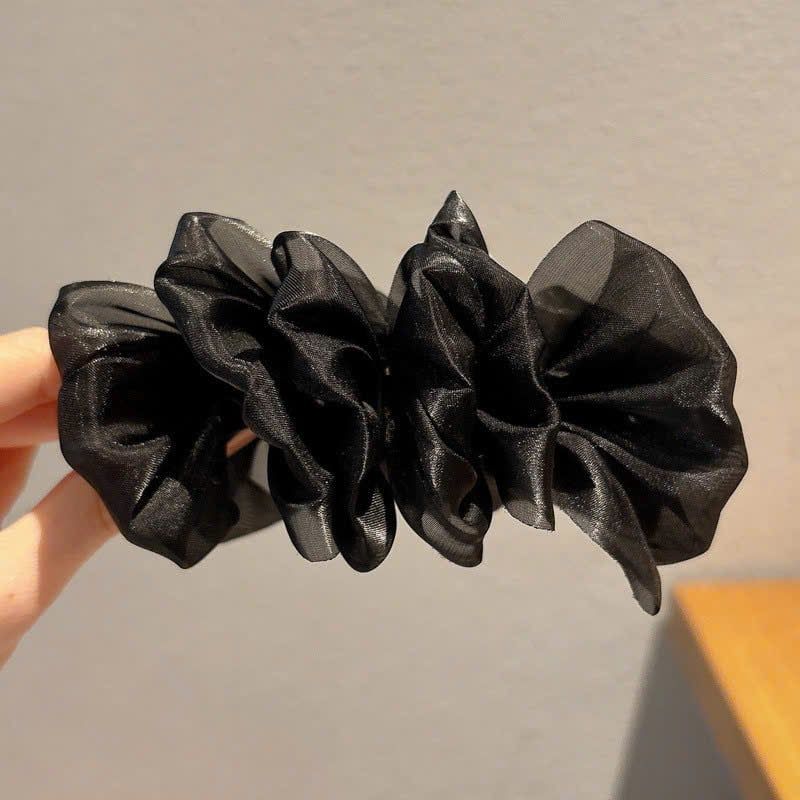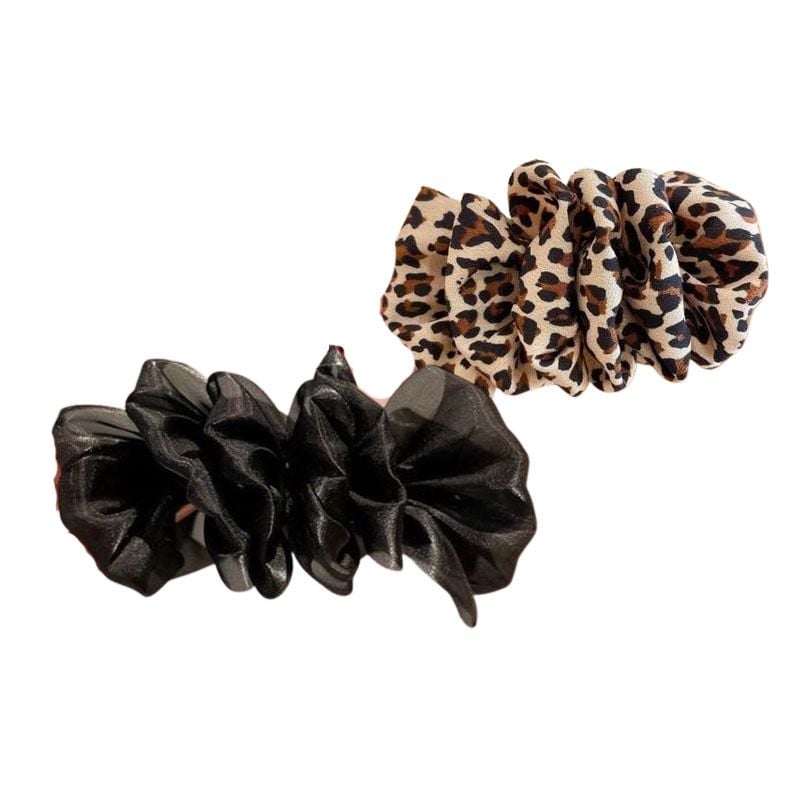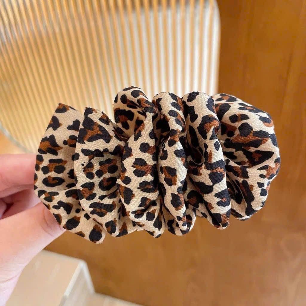 Kẹp làm từ chất liệu vải lụa mềm + khung nhựa chắc, giữ tóc gọn gàng nhưng không đau đầu, không làm gãy rụng tóc. Hai phiên bản màu Đen thanh lịch và Báo cá tính giúp nàng dễ dàng chọn phong cách phù hợp.