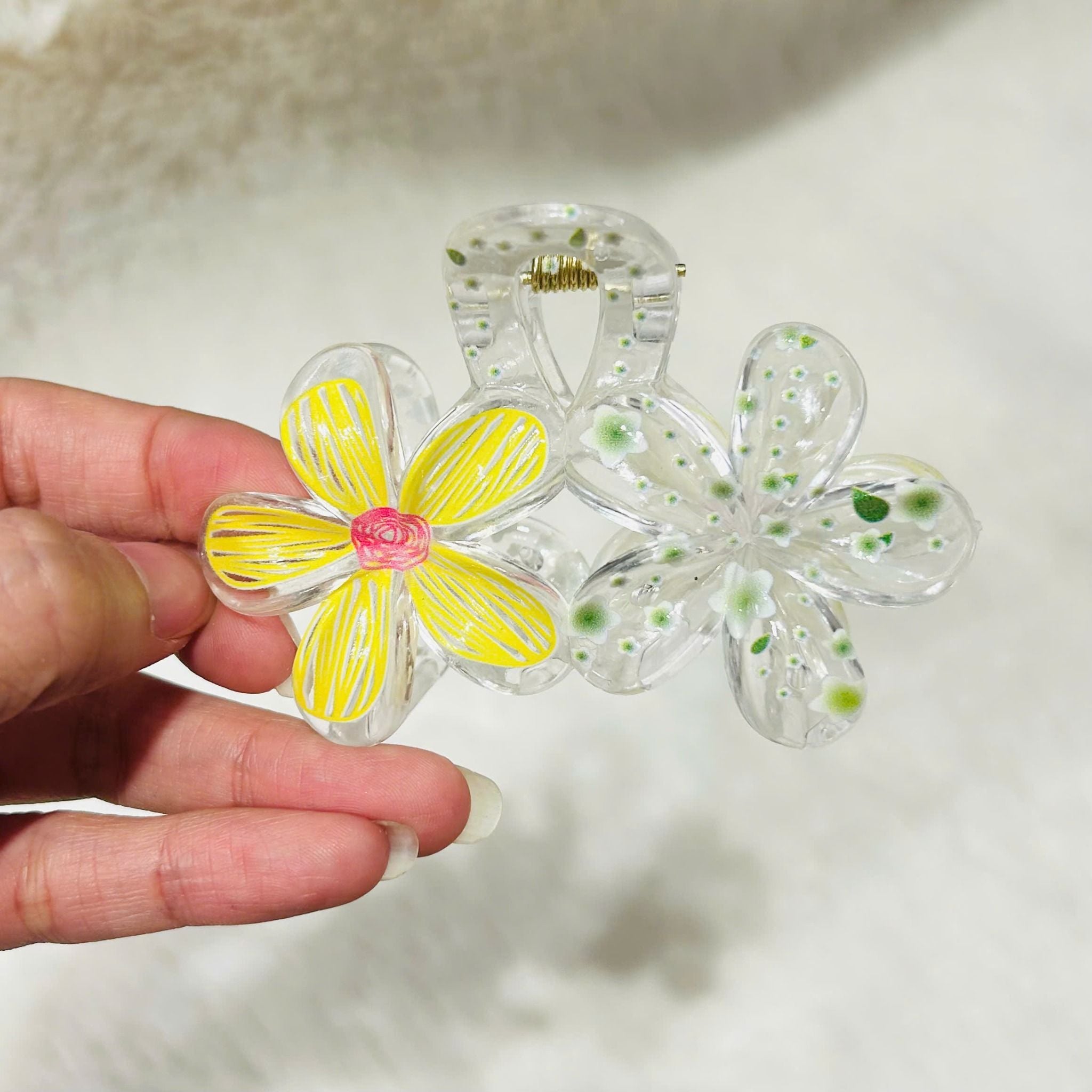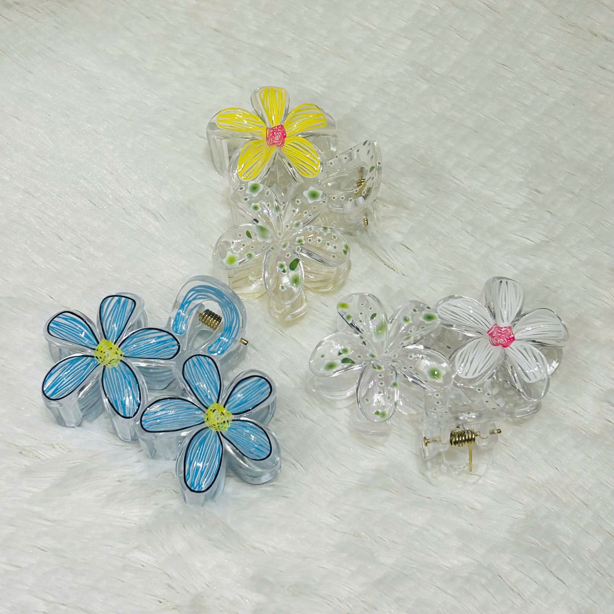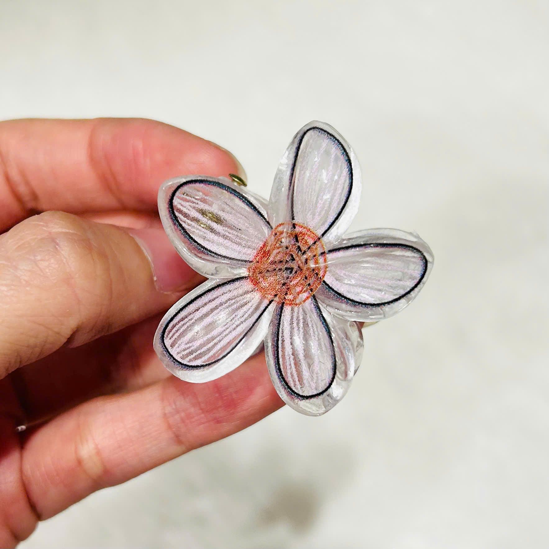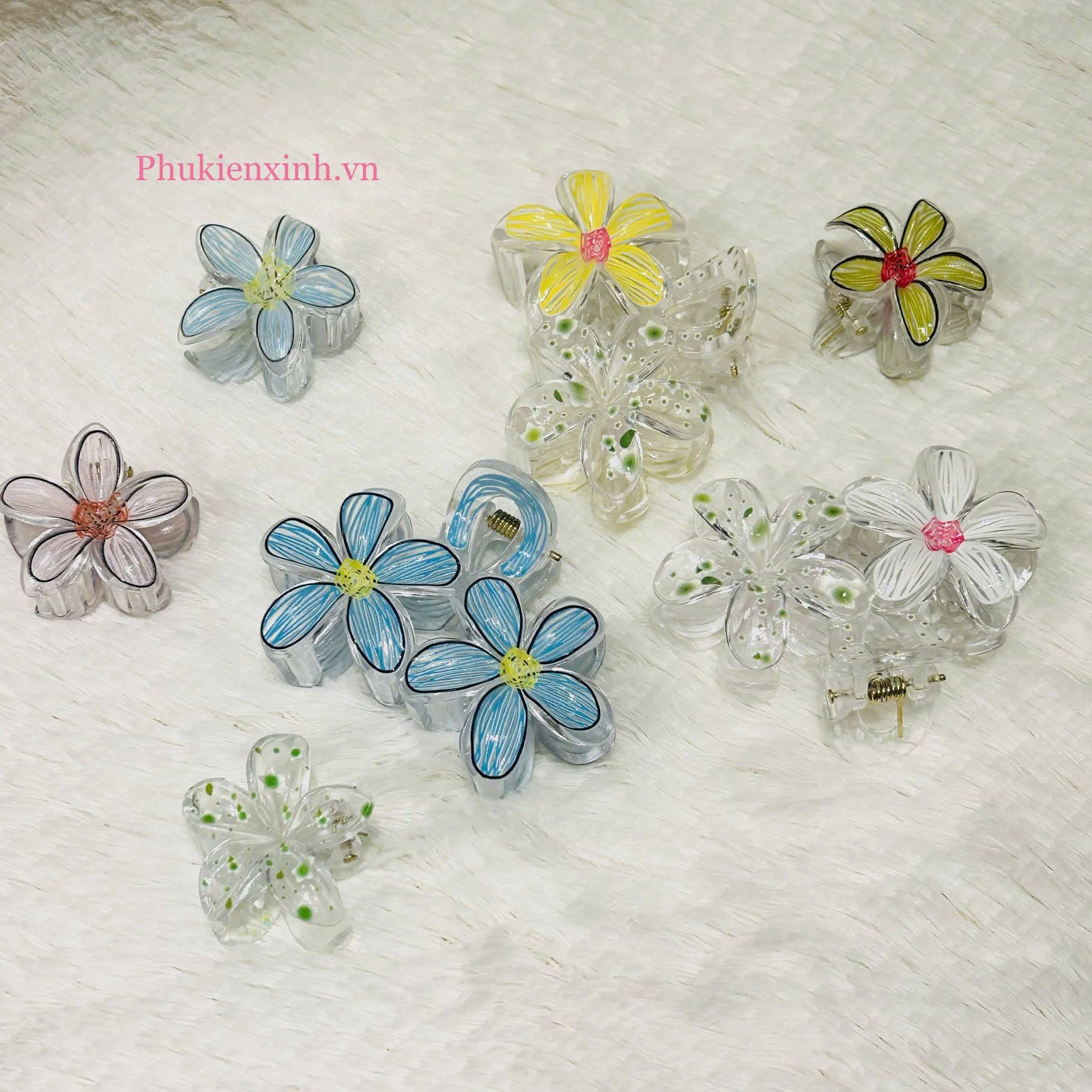 Kẹp tóc hoa nhựa KT0313 – Kẹp hoa trong suốt nhiều màu xinh xắn