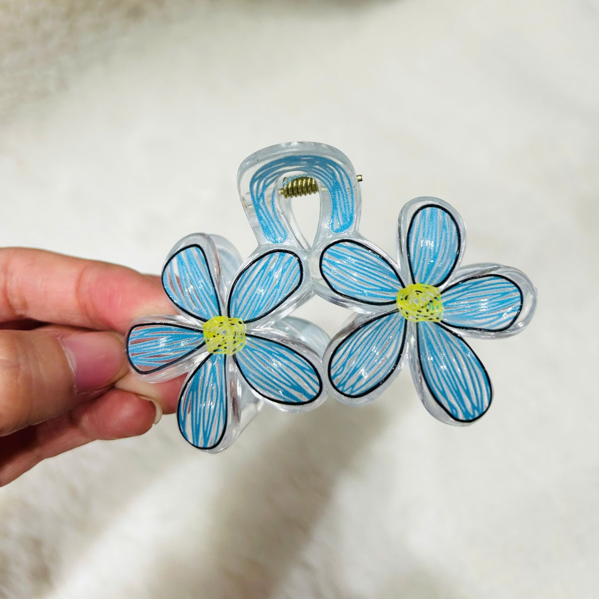 Thiết kế hoa trong suốt 3D, với chất liệu nhựa trong mềm dẻo, điểm xuyết nhụy hoa nhỏ nhắn xinh xắn – tạo cảm giác trong trẻo, tươi mát và cực kỳ “chill vibe”. 🌼