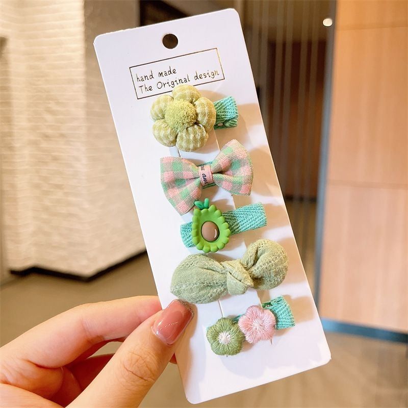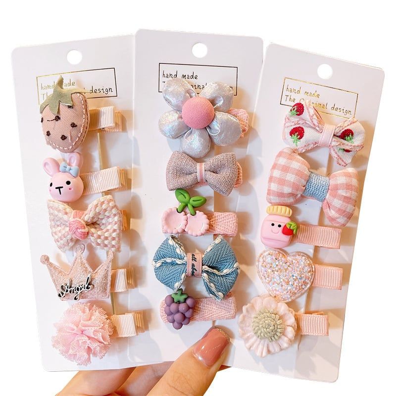 Set kẹp tóc nhiều món với tạo hình dễ thương: nơ vải, thú nhỏ, trái cây, hoa, bi tròn… phối màu pastel nhẹ nhàng, nhìn là mê liền 💕