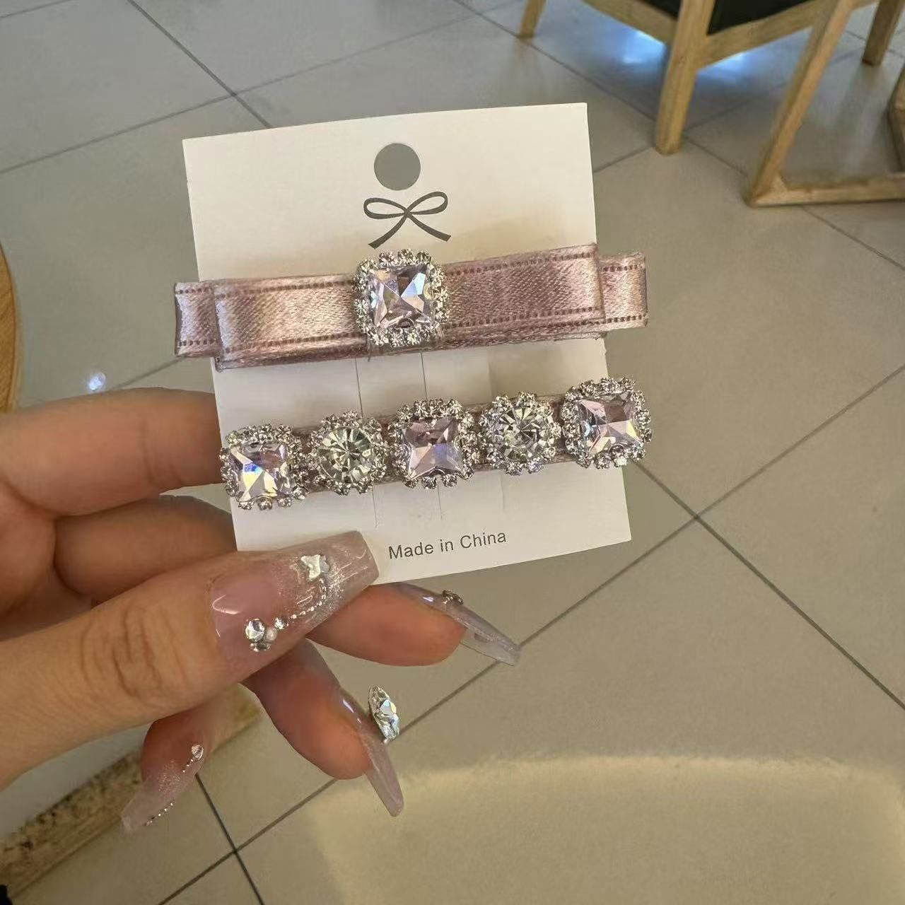 - Đính đá kim cương giả lấp lánh full thanh, mix charm vuông tròn xinh xắn, kiểu barrette mini luxury Y2K đỉnh cao 💅