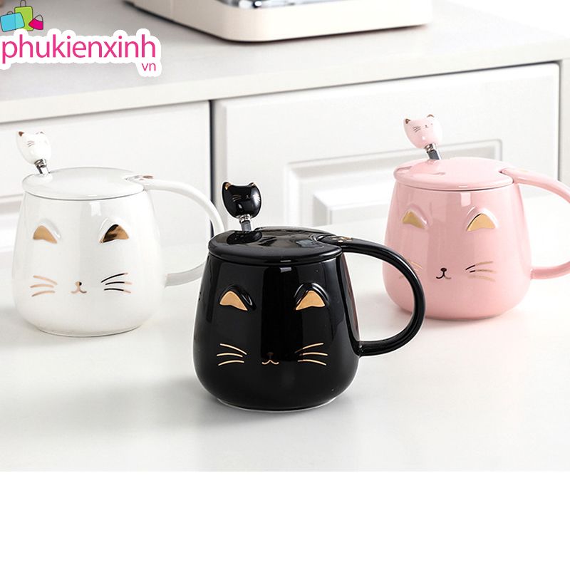 Ly Đựng Nước Hình Mèo DL023 – Cute Đỉnh Cấp Có Nắp & Muỗng Tiện Lợi