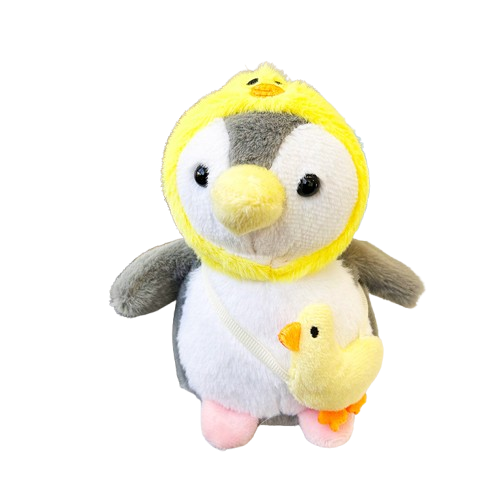 Móc khóa thú bông chim cánh cụt đội nón vịt siêu đáng yêu, nhìn là muốn “rinh về” liền 🥰. Thiết kế độc lạ với tạo hình chim cánh cụt ôm vịt con, đội mũ hình vịt vàng nổi bật, cực hợp gu mấy bạn mê đồ dễ thương.