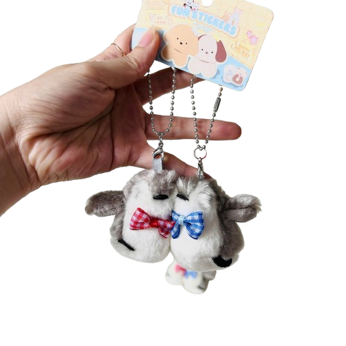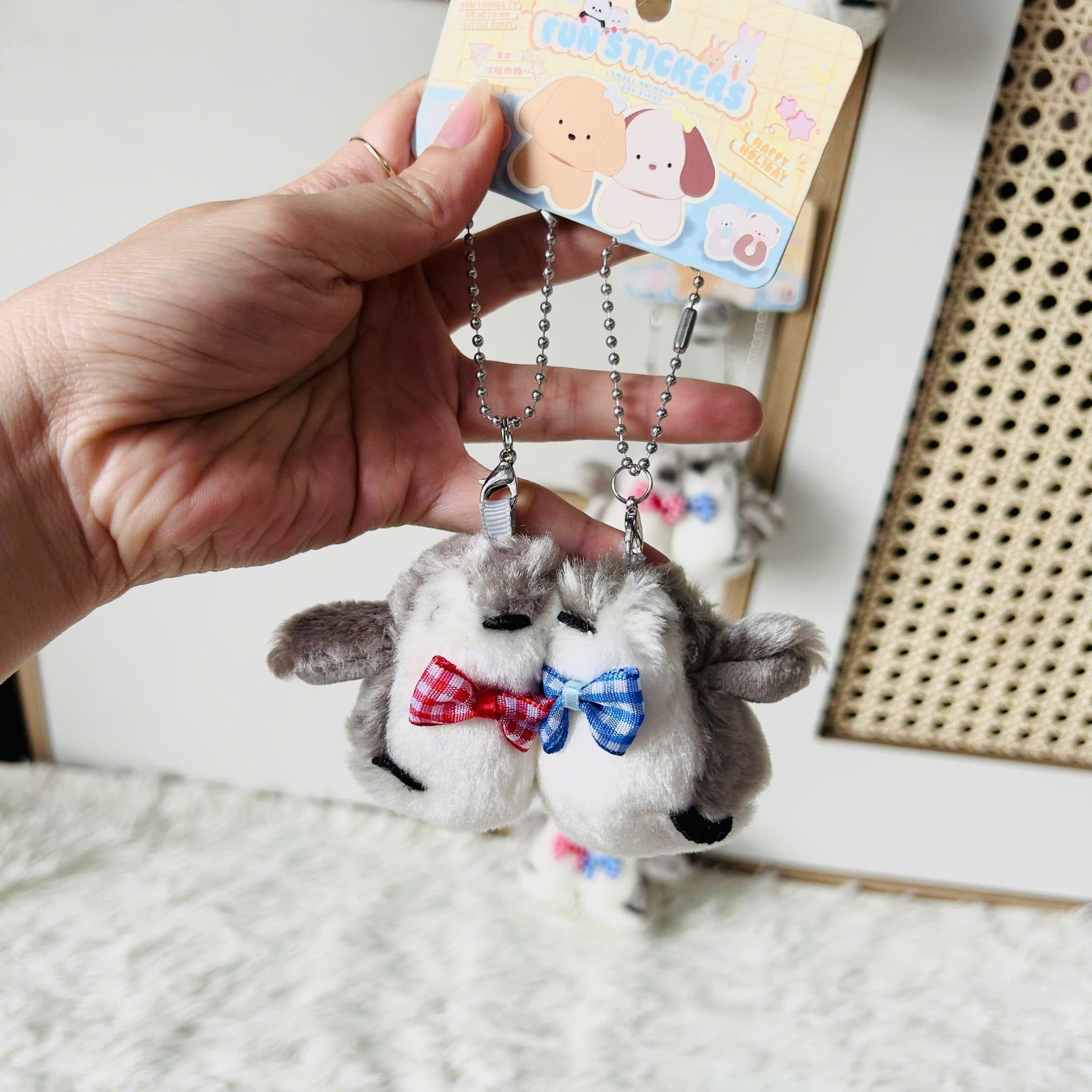 Siêu đáng yêu hết nấc! Móc khóa đôi thú bông với chất lông mềm mịn, chi tiết thêu sắc nét, tông màu xám – hồng hài hòa mang vibe dễ thương chuẩn style vintage Hàn Quốc 🐻✨