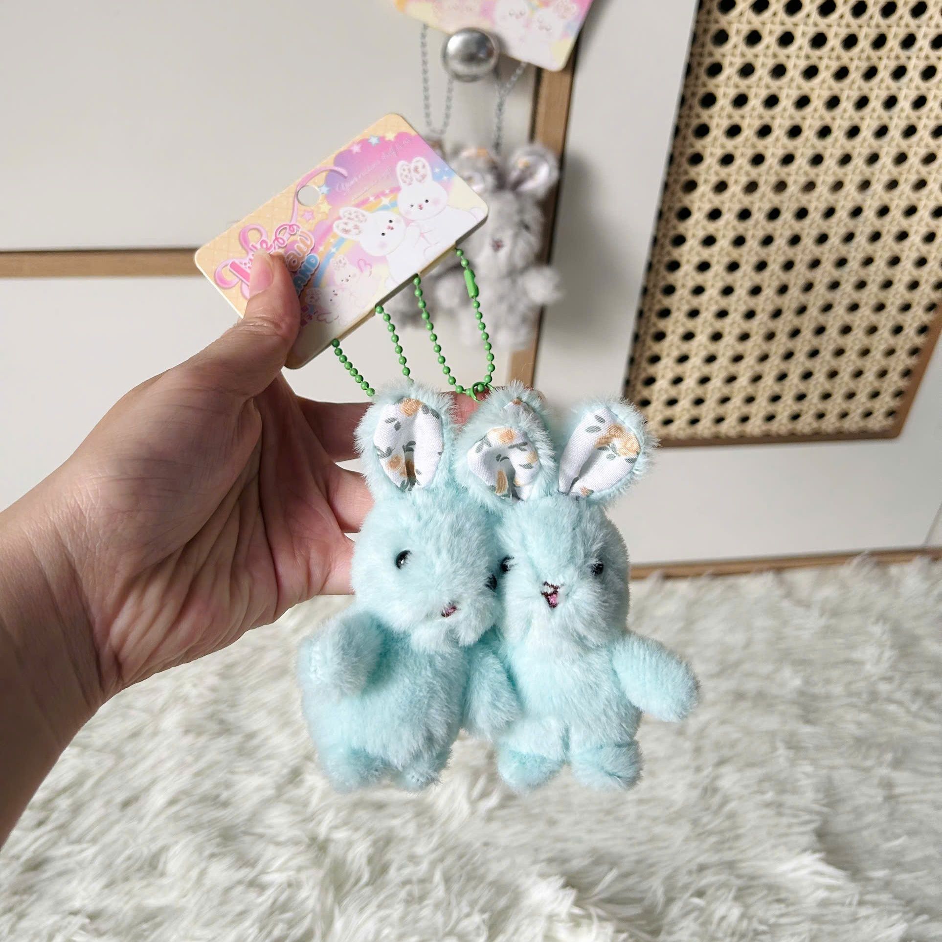 Thêm chút “kawaii vibes” vào outfit với Móc Khoá Thỏ Nhồi Bông Đôi Pastel 🐰✨