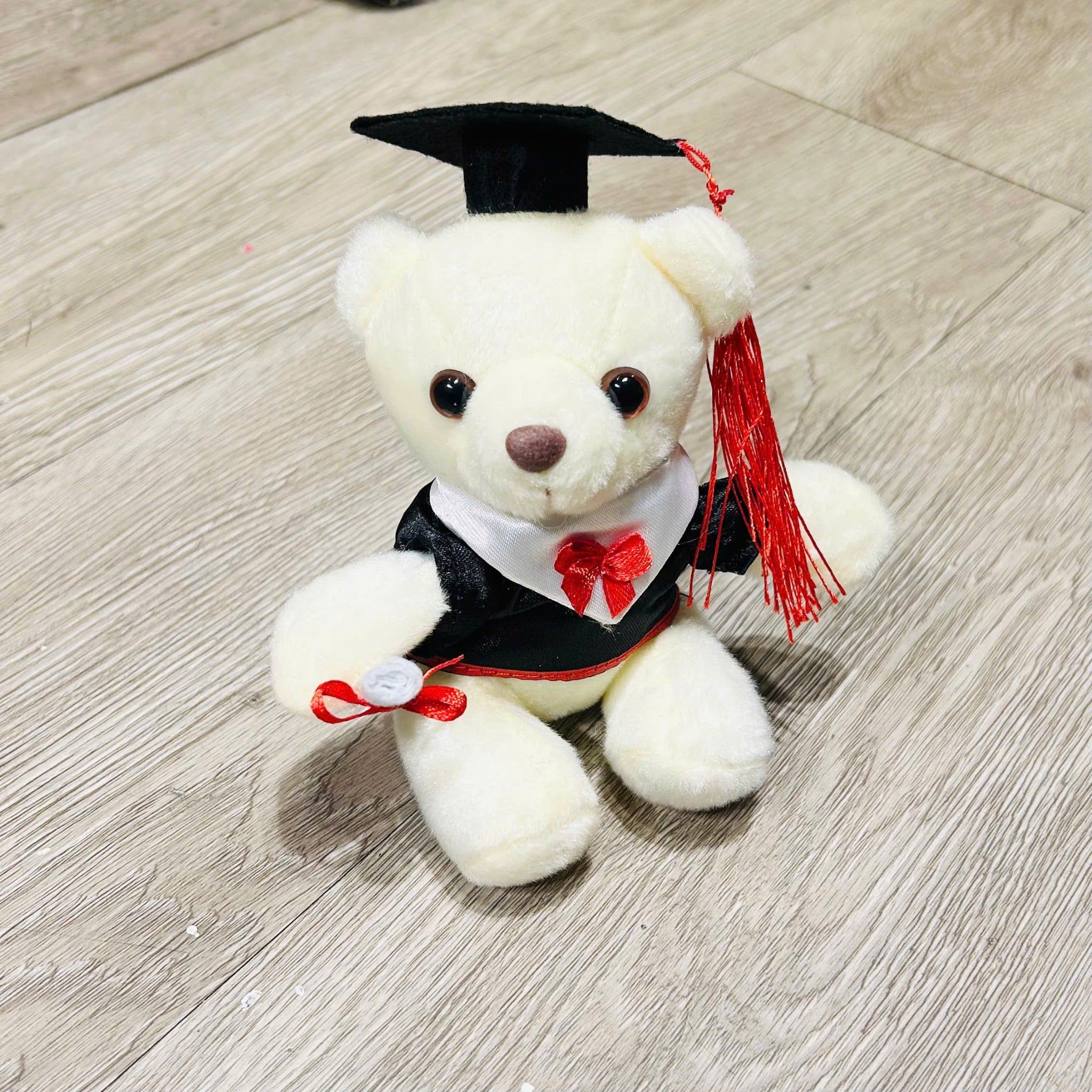 Gấu bông mặc áo tốt nghiệp, đội mũ cử nhân và cầm bằng tốt nghiệp – cực kỳ phù hợp để tặng dịp lễ tốt nghiệp, ra trường, chúc mừng thành công.