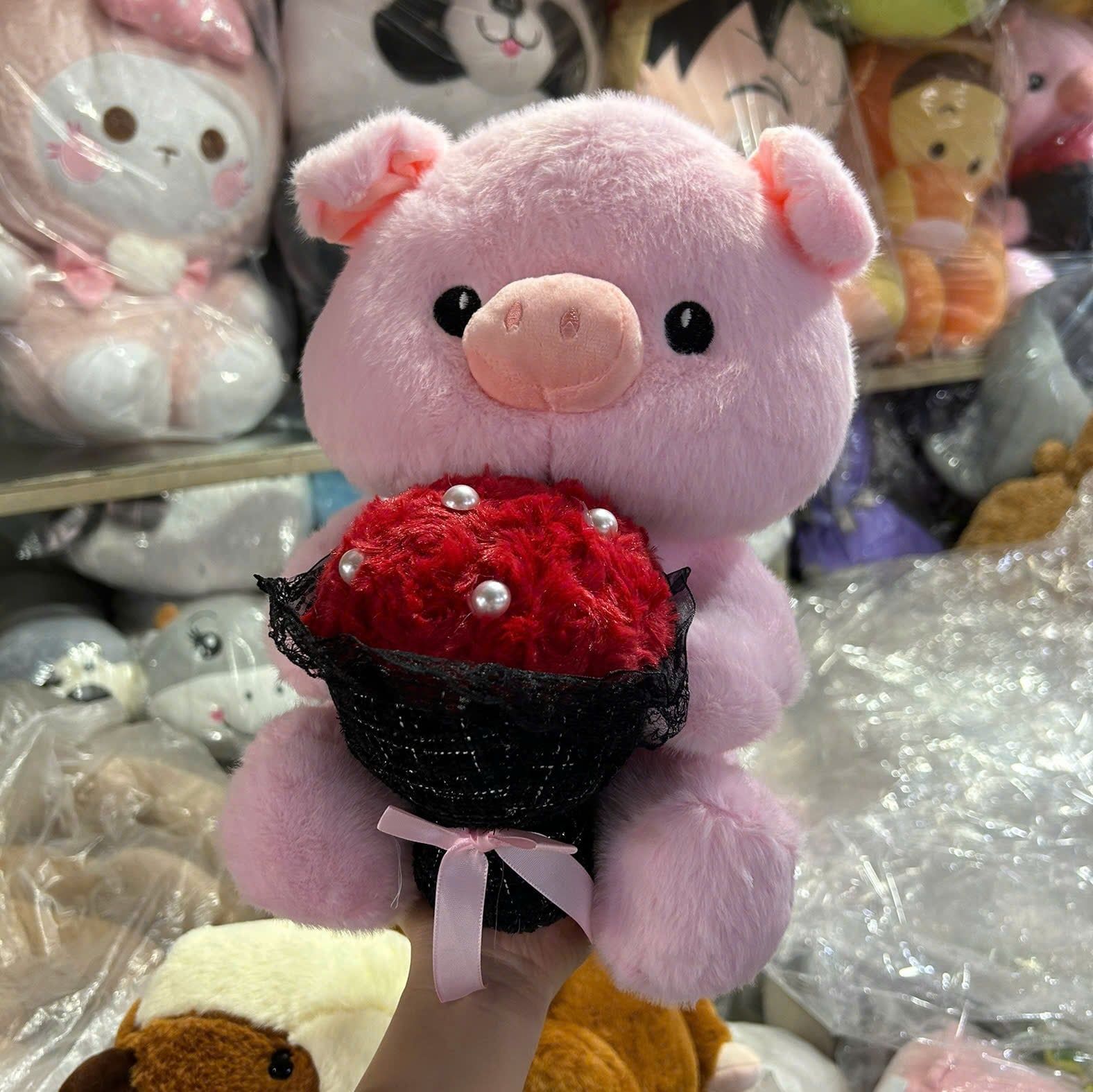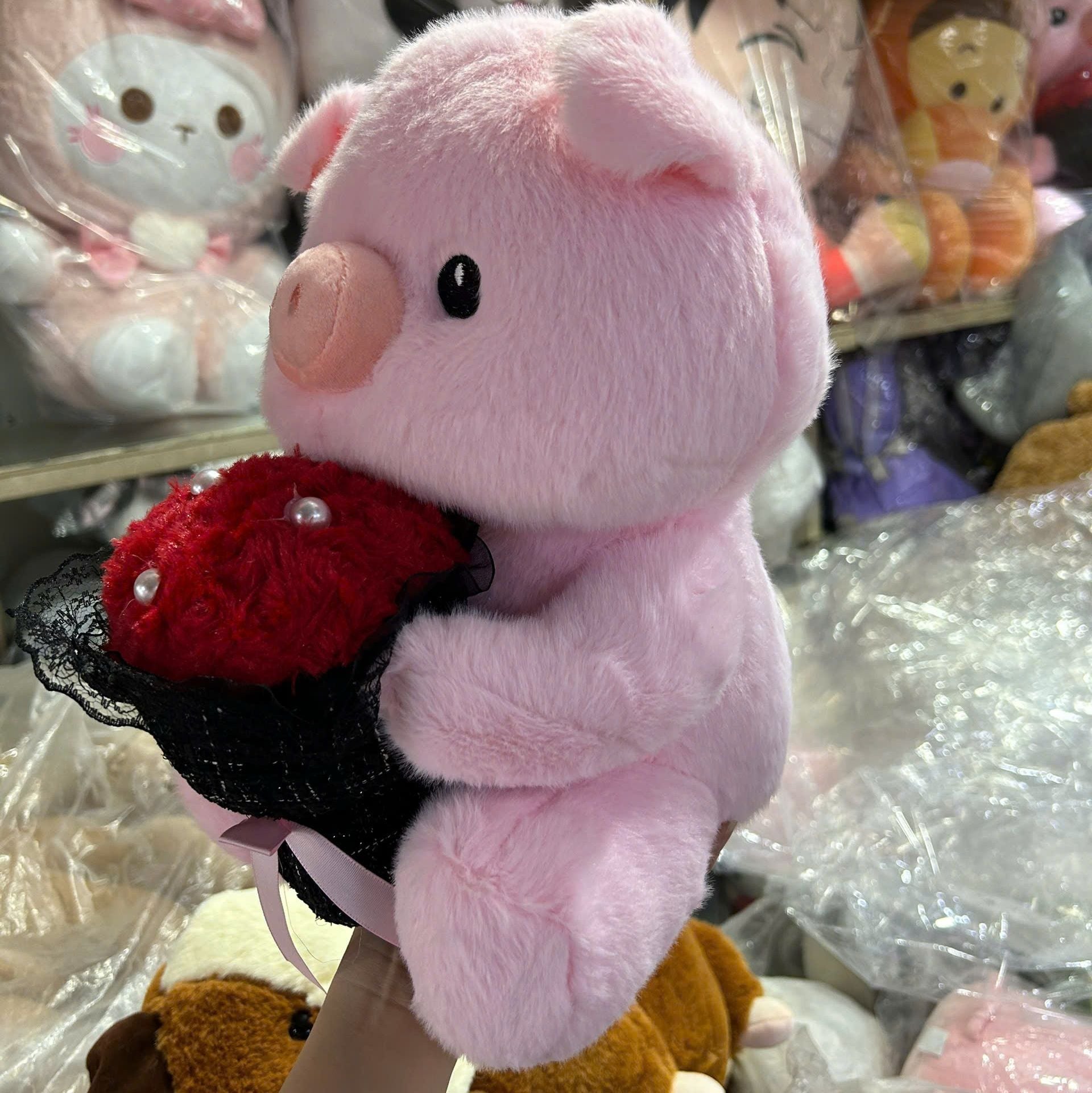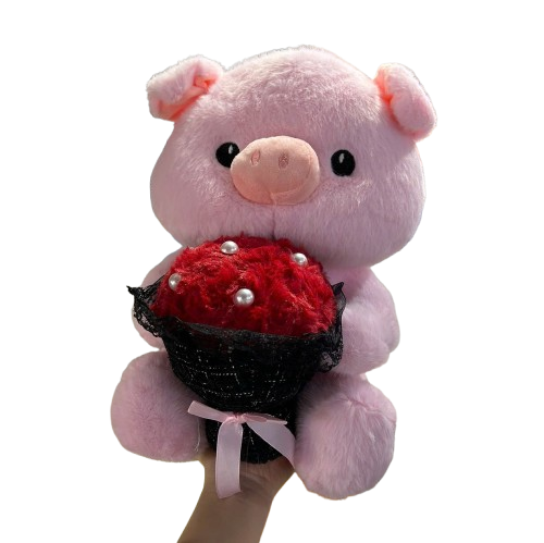Thú bông heo ôm hoa size 50cm với tạo hình heo hồng bụ bẫm đáng yêu kết hợp bó hoa đỏ nổi bật, cực hợp làm quà tặng tình yêu, sinh nhật, Valentine hoặc các dịp đặc biệt 🎁💐