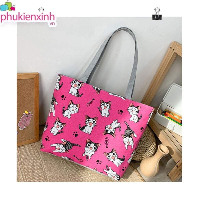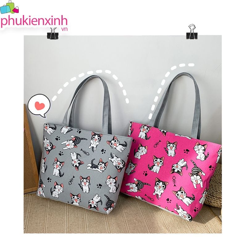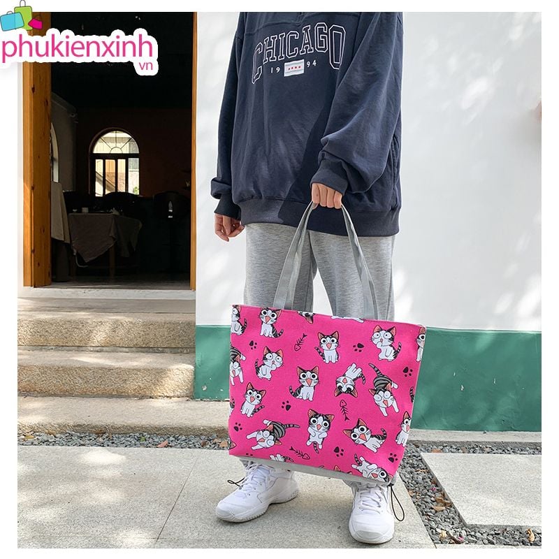 Túi Tote Vải Canvas Họa Tiết Mèo Đáng Yêu XT0069