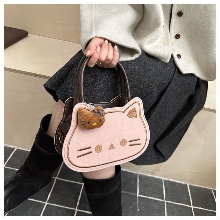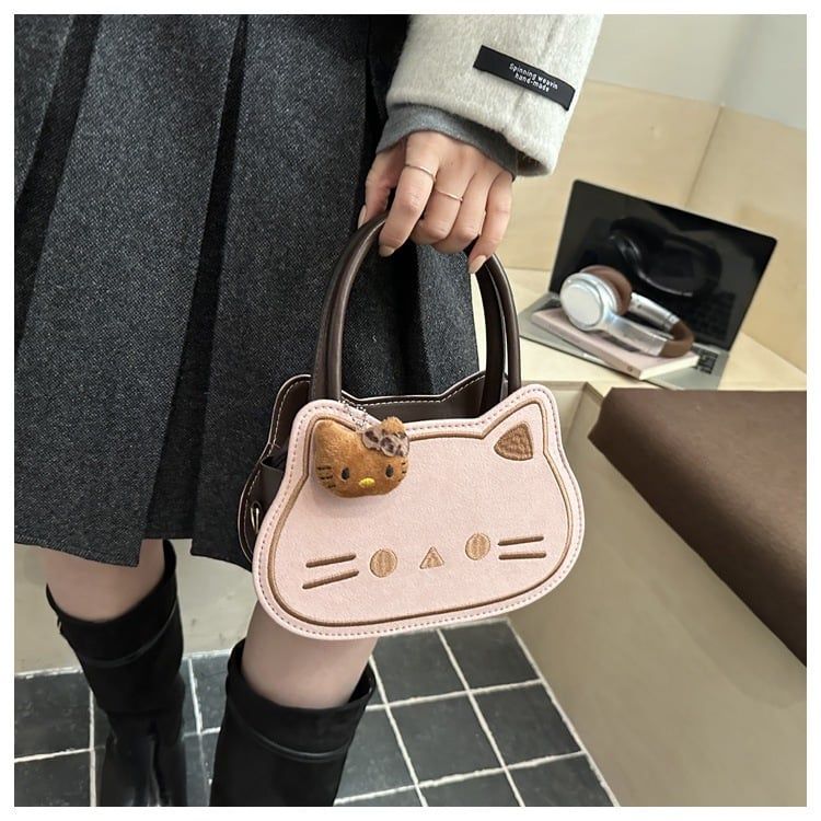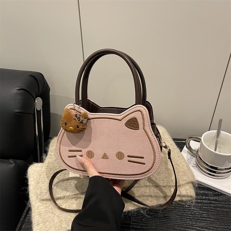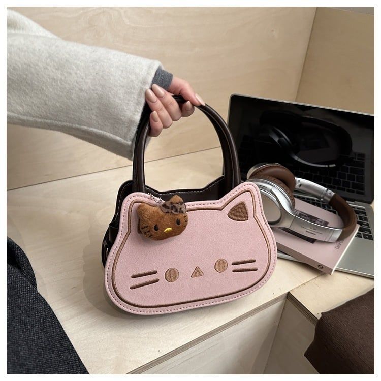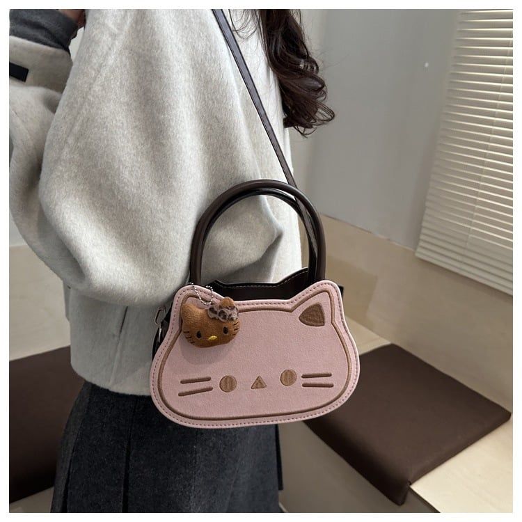 🐾 Túi xách hình mèo cực dễ thương, kèm charm gấu nhỏ tạo điểm nhấn