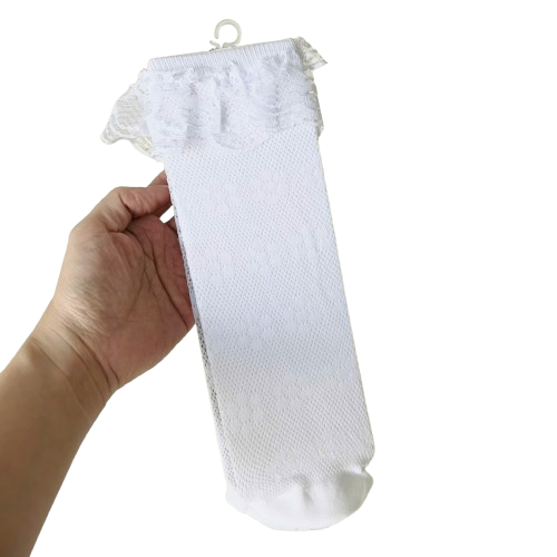 Vớ mùa cổ cao trắng cho bé kiểu bèo ren công chúa, lên chân thon – dài – nhìn rất sang và thanh lịch 🎀✨