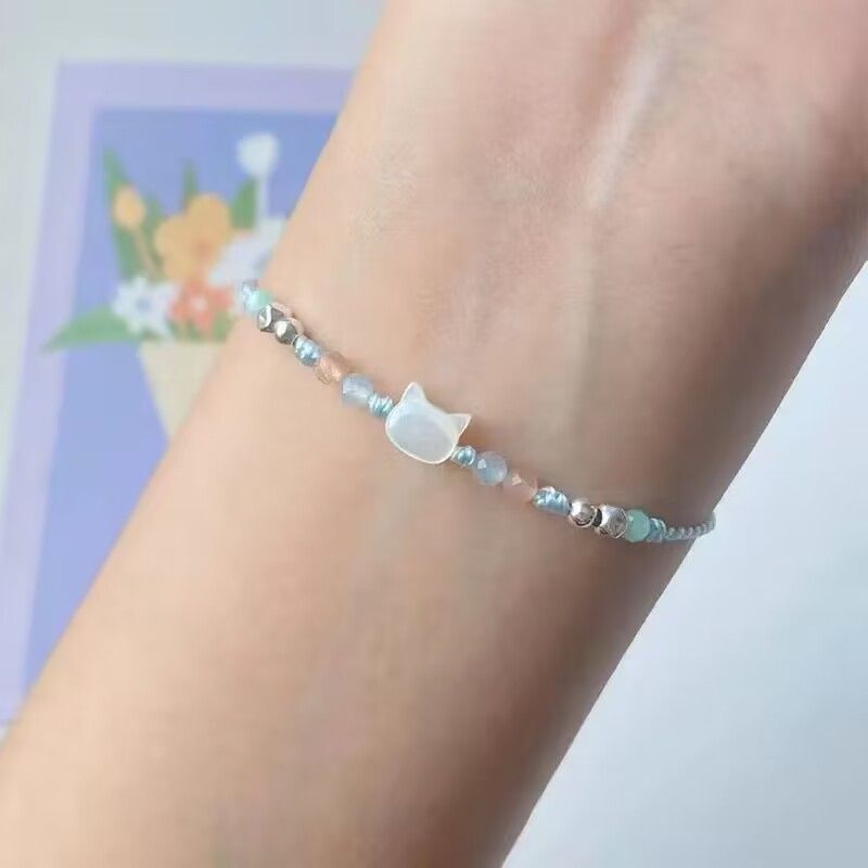 Thiết kế vòng hạt nhỏ kết hợp charm mèo tinh tế, màu sắc hài hòa, đeo lên tay nhìn cực kỳ dễ thương.